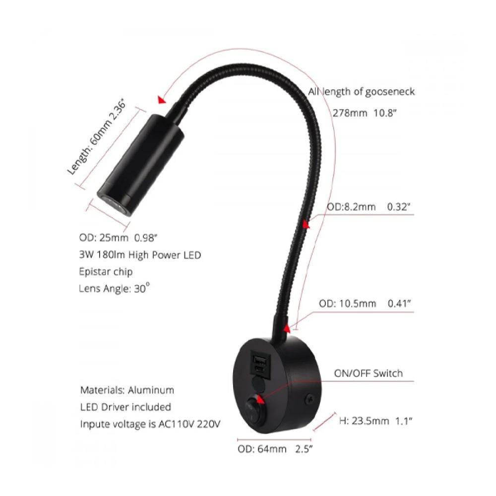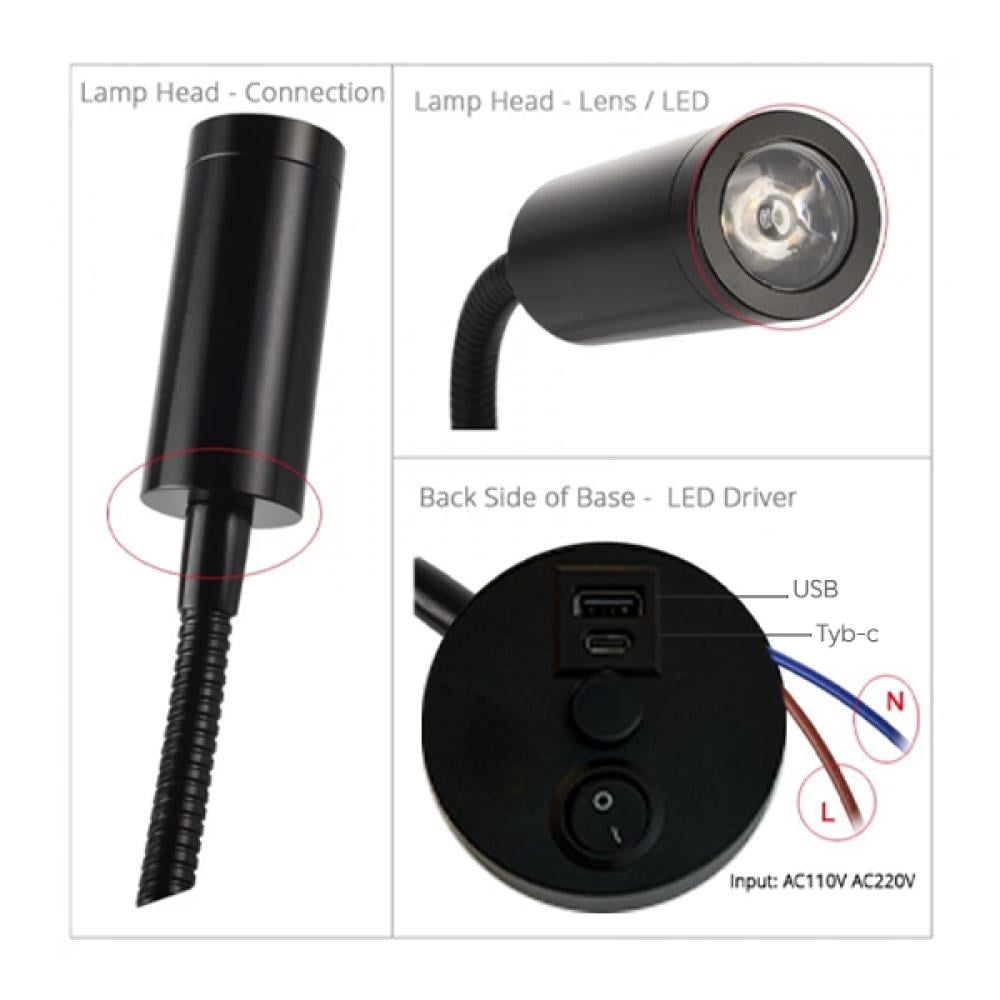 Uno Wall Mount Reading Light with USB/Tyb-C Charger Port QTS-608L3